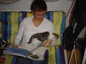 Auch wenn Steffi nur kurz bei uns wohnte, hatte sie den kleinen sehr lieb und er verbrachte gerne seine Zeit bei ihr. Auch jetzt ist er immer noch oft auf ihrem bett oder der Hollywoodschaukel zu finden.